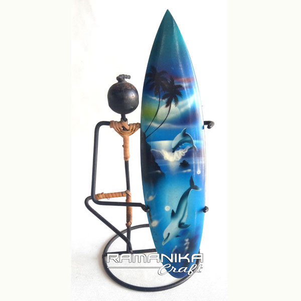 Bali Surfboard Airbrush Iron Man Stand Handicraft
